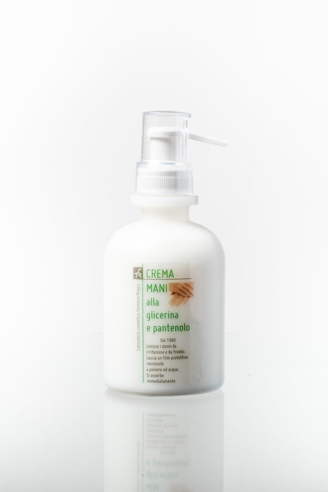 La CREMA MANI alla glicerina e pantenolo non unge, idrata la pelle e la protegge. E’ stata formulata nel 1980 dal Dottor Roggia che voleva aiutare i tanti lavoratori del suo paese di montagna, con le mani rovinate dal lavoro nella cava di silice.