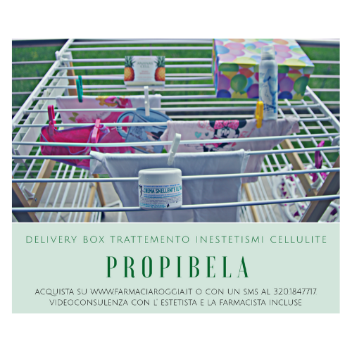 Il DELIVERY BOX PROPIBELA – INESTETISMI DELLA CELLULITE contiene i trattamenti e i consigli dell’estetista e della farmacista a casa tua!
